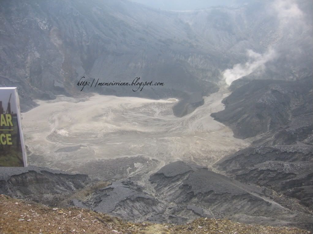 Satu-satunya tempat menarik yang saya lawati (yang lain shopping saja) adalah Tangkuban perahu. Kalian boleh baca mitosnya di sini. Cuaca di sini sejuk dan dari pertengahan jalan untuk mendaki ke sini memang berbau belerang yang kuat. Sungguh tak selesa apabila di kejar penjaja! Pemandu kenderaan yang membawa kami ke sini beritahu jangan beli apa-apa di sini kerana harganya yang agak mahal.